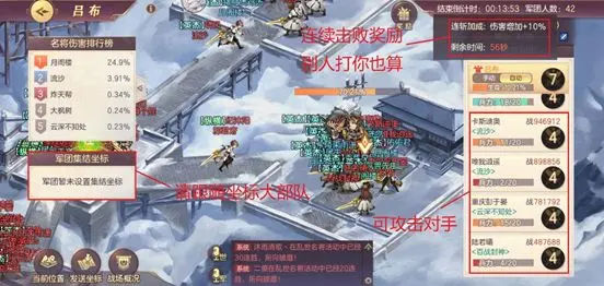 初始兵力为20点,每次挑战对手成功时,自身减少1点兵力,对手减少4点兵力。当连续十次,二十次,三十次获胜可以获得攻击buff,对boss伤害提高。敌人挑战自己失败时,不扣除。为防止被击败,请在兵力5或1时选择停止攻击敌人,因为复活将会浪费20秒的时间。攻击对手请选择战力略微低于自己的,保护低战力。请跟随大部队,切勿进入被占领的boss图。