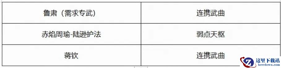 武将:瀚雪张辽-乐进护法、煊明孙策-周瑜护法、孙鲁班、鲁肃(需求专武)、赤焰周瑜-陆逊护法、蒋钦