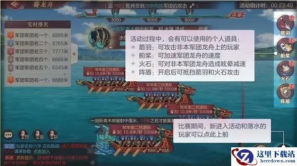 龙舟的速度和军团的参与人数有关,人越多,速度越快,也可以用元宝助威,上限是50%。