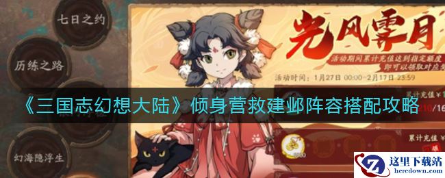 《三国志幻想大陆》游戏中倾身营救建邺阵容很多玩家不知道怎么搭配,那么今天小编就给大家介绍一下三国志幻想大陆倾身营救建邺阵容搭配攻略,有需要的小伙伴不要错过了。