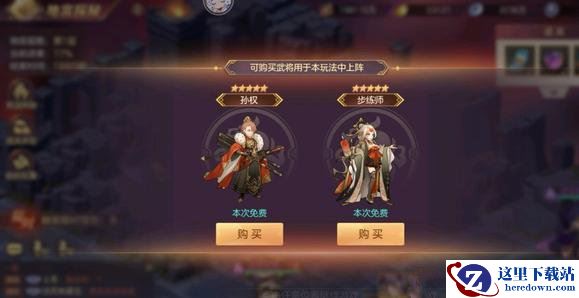 注意:①在图二位于角落的茶馆有免费武将(如图四),如果购买会严重影响主攻玩家的操作,所以.不.要.去.购买免费武将以及后续武将,地宫模式里的武将是带不出去的。