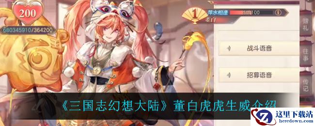 以上就是小编整理的关于《三国志幻想大陆》董白虎虎生威介绍的全部内容,更多游戏攻略请持续关注手游网!