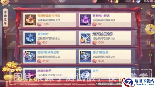 活动期间,活动中获得的灵宠币可在活动宝库中兑换往期稀有灵宠碎片、无双助力精选箱、橙宠碎片任选、随机3星稀有圣物等奖励。