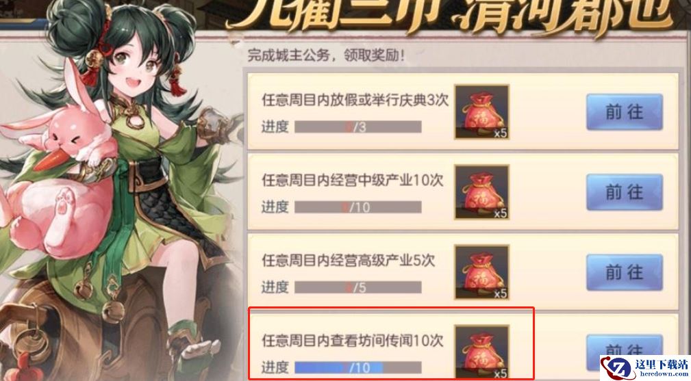 2、任务要求大家完成十次坊间传闻,点击主界面那些小人物,点他们头上的对话框就行了。