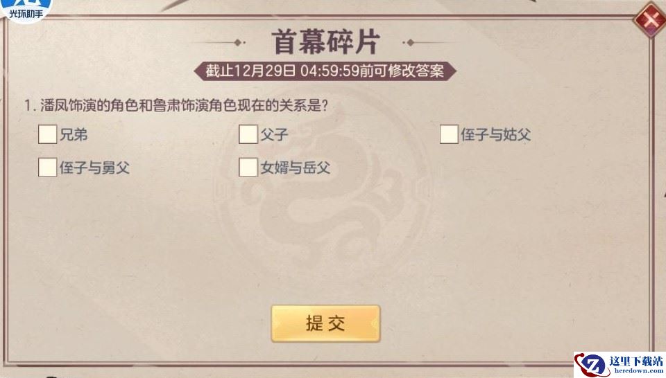 1、首幕碎片问题为潘凤饰演的角色和鲁肃饰演角色现在的关系是什么?
