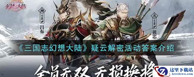 三国志幻想大陆游戏中的疑云解密活动是新上线的活动玩法,那么疑云解密活动答案是什么呢?可能还有很多玩家不是很清楚,今天小编就给大家带来三国志幻想大陆疑云解密活动答案介绍,感兴趣的小伙伴们一起来看看吧。