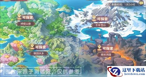 1、活动期间,玩家可点击【探索】进入玩法地图,完成【崎岖山脉】、【千年雪山】、【桃源水乡】、【熔岩洞窟】四个区域的探索任务获得丰富奖励。
