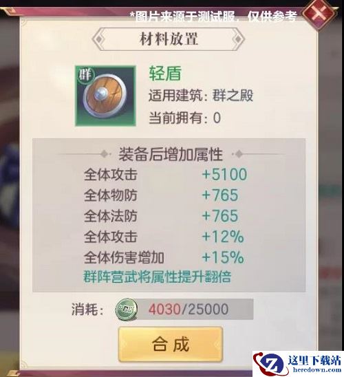 2、重头戏还是在四国大殿提升,大家可以使用前面获得的对应国家材料进行放置,也可以通过五铢币进行合成,每个国家对对应国家武将的属性加成翻倍、技能效果提升,不过由于后续高等级所需五铢币过多,所以简单来说保命>上阵武将国家数量,从我前面推荐的阵容可以看出群蜀武将较多,因此群>蜀>吴≥魏。