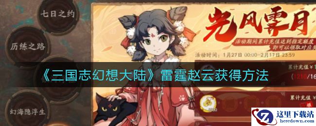 三国志幻想大陆雷霆赵云怎么获得?《三国志幻想大陆》游戏中雷霆赵云是新上线的武将,能力十分强悍,那么如何获取呢?今天小编就给大家介绍一下三国志幻想大陆雷霆赵云获得方法。