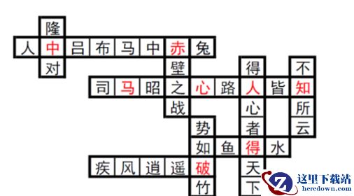 三国志幻想大陆填字游戏第二章答案:人中吕布,马中赤兔,司马昭之心路人皆知,得人心者得天下,不知所云,如鱼得水,势如破竹。这些用红色标出来的就是填空里需要填写的正确答案了,如果字少了,我们就需要第二天再获取。