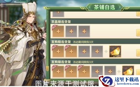 点击茶铺货架中的“加号”键,即可挑选货架中的“精选”与“普通”任选商品,消耗货架标记数量的茶晶或人民币直购后,即可获取选择的商品!超值特惠,不容错过噢!