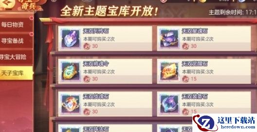 使用寻宝奖章即可兑换无双将魂令、无双列传石、无双唤灵石、无双觉醒石、无双战魂石、无双装备石、橙神兵碎片任选等多种资源!