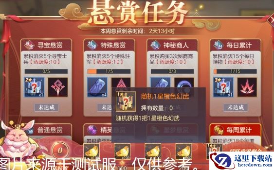 除了“神秘商人”外,在这充满危机的剑冢之中,还有一只会发放悬赏的肥兔子,比如消灭5个寻宝士兵、消灭8个精英守卫这类的任务。完成之后除了能获得buff加成,