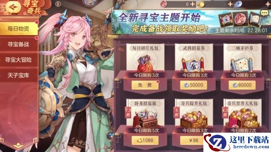 接见信使后,开启寻宝备战任务。每日完成讨伐魔将、家园互动、群雄逐鹿等玩法条件即可获得司隶藏宝图碎片及刻印石、好感度宝箱、精炼石等奖励。