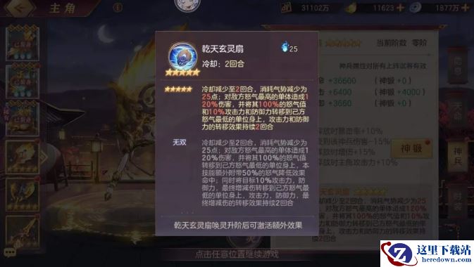 扇子是可以直接削弱对面姜维的神兵!若打到对面的姜维身上,直接将其怒气吸干,让他一下回到解放前,同时我方会有一人怒气提升,多放一个怒攻,便多触发了姜维的一次普攻,相比之下,其他任何神兵与扇子均无法匹敌!因此请设置扇子首位,释放顺序能多释放扇子,就释放扇子吧!实战中我经常可以用扇子打到对面姜维身上,从而夺下胜局!实测非常好用!不过,5星扇子的缺点是偶尔会未命中……或者吸取怒气的效果被抵抗,毕竟有贾诩这种BUG效果英雄的存在。因此无双扇子就成了重中之重!自带50%增强命中,便可最大概率的使吸怒效果生效!10%的攻防弱化,也是一个锦上添花的效果。