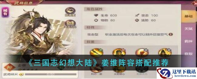 以上就是《三国志幻想大陆》姜维阵容搭配推荐的全部内容了,更多手游攻略请关注手游网!