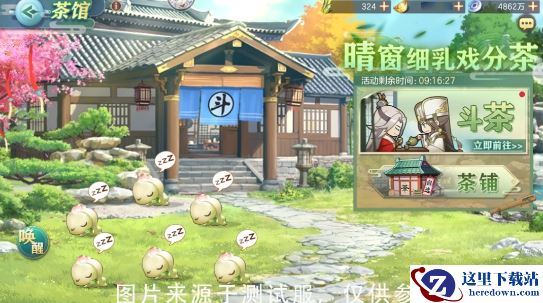 活动期间,通过每日进入【茶馆】活动主界面,可以对主界面园中沉睡的“茶灵”进行唤醒。被唤醒的茶灵经过3小时后开花,即可轻松收获活动货币「茶晶」与刻印石、高级神锻石等随机养成材料!