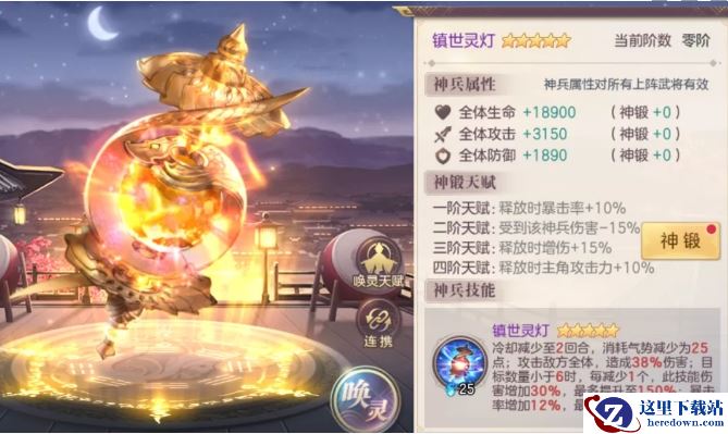 三国志幻想大陆镇世灵灯怎么样?《三国志幻想大陆》游戏中镇世灵灯是一个比较强力的神兵武器,但是很多玩家不太清楚,那么今天小编就给大家介绍一下三国志幻想大陆镇世灵灯图鉴一览。