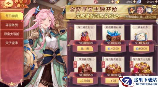 消耗元宝购买西凉藏宝图碎片、凤雏神兵箱,内含橙神兵碎片任选及寻宝奖章。