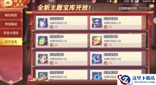 使用寻宝奖章即可兑换无双将魂令、无双列传石、无双唤灵石、无双觉醒石、无双战魂石、无双装备石、橙神兵碎片任选等多种资源!