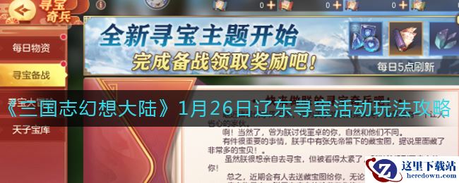 三国志幻想大陆1月26日寻宝活动怎么玩?《三国志幻想大陆》游戏1月26日新一期的辽东寻宝活动就要开始了,那么活动内容都有什么呢?今天小编就给大家介绍一下三国志幻想大陆1月26日辽东寻宝活动玩法攻略。