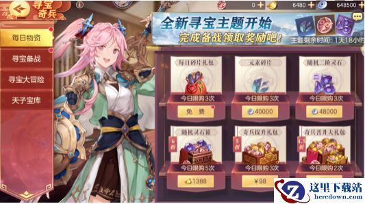活动期间,每日物资大放送!每天可消耗银两购买元素碎片、随机二阶灵石。消耗元宝购买辽东藏宝图碎片、随机灵石箱,内含随机三阶灵石及寻宝奖章。充值购买奇兵礼包,内含元宝,寻宝奖章等资源。