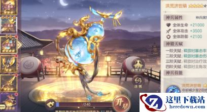 在神兵上我们选择【洪荒济世葫】【和氏璧】【太凰射日弓】。