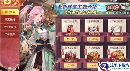 活动期间,每日物资大放送~每天可消耗银两购买将魂精华、三顾茅庐券。消耗元宝购买江南藏宝图碎片、无双将魂箱,内含随机神将将魂及寻宝奖章。充值购买奇兵礼包,内含元宝,寻宝奖章等资源。