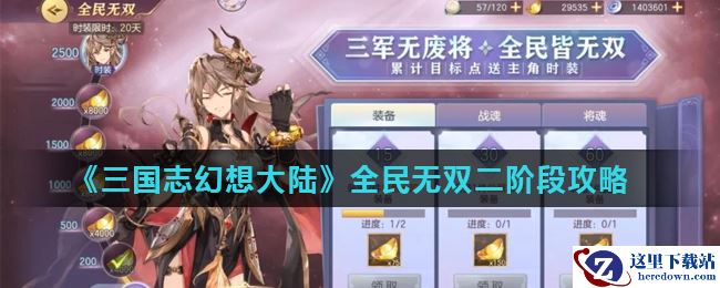 《三国志幻想大陆》游戏中暗之潮怎么获得?游戏中玩家可以通过全民无双二阶段来获取暗之潮,很多玩家不知道怎么达成全民无双二阶段,那么接下来小编为大家带来《三国志幻想大陆》全民无双二阶段攻略,一起来看看吧。