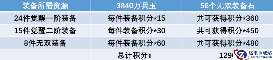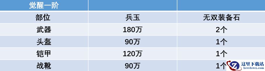 在最后附有各个阶段装备需要的兵玉,无双装备石等,可以自己规划。