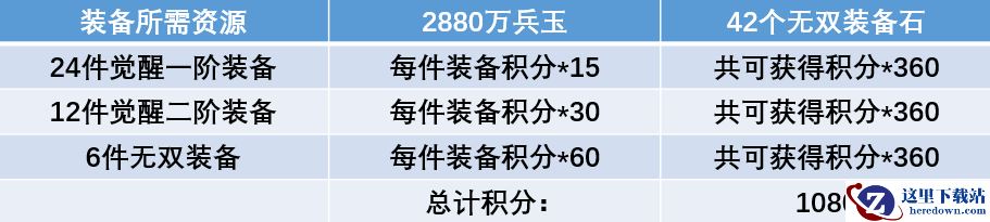 注:以上兵玉的计算以橙色装备打底,计算自己需求的时候忽略橙色以下即可。其中无双装备石约需要购买10个左右,如果混沌之地充值过可以无需购买。