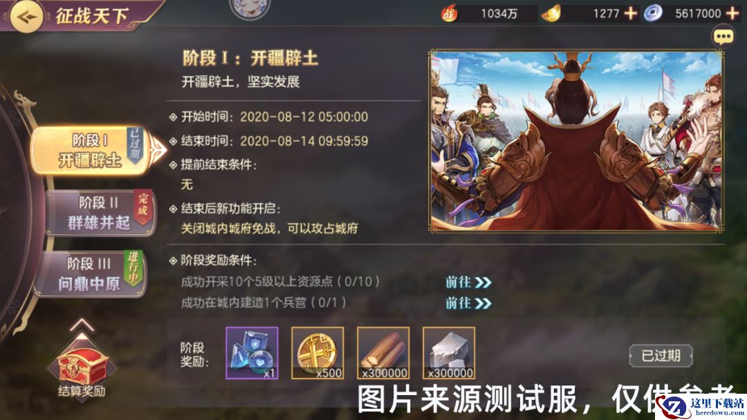 第1阶段,基本上只需要佛系的【征战】几次,拿些奖励;等着【矿石】【木材】入账,提升科技,布置好队伍的位置…差不多15分钟左右就结束这个阶段了。