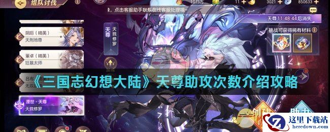 以上就是小编整理的关于《三国志幻想大陆》天尊助攻次数介绍攻略的全部内容,更多游戏攻略请持续关注手游网!