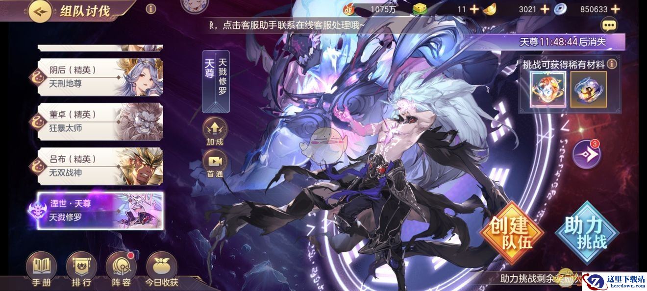 5、如果玩家刷出天尊后,天尊只属于该玩家,但是玩家可以邀请好友帮助你一起攻打。