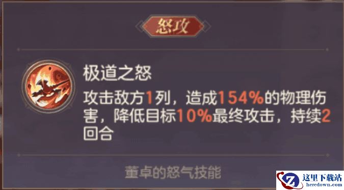 董卓的大招可以降低一列目标10%的最终攻击,在敌方输出一再削弱的情况下,敌方的伤害对我方的威胁已经削弱了很多。