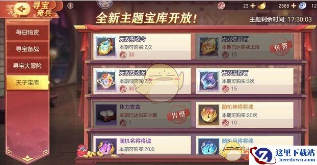 2、游戏中夺宝奇兵天子宝库中也能兑换获得,每一期玩家可以兑换两个,需要消耗玩家三十个寻宝奖章。