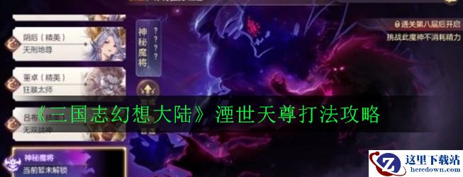 《三国志幻想大陆》游戏中湮世天尊怎么打?很多小伙伴表示湮世天尊打不过去,而且很多小伙伴还不知道湮世天尊怎么解锁,那么接下来小编为大家带来《三国志幻想大陆》湮世天尊打法攻略,一起来看看吧。