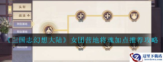 《三国志幻想大陆》游戏中女团营地将魂怎么加点?很多小伙伴不知道女团营地将魂怎么加点,那么接下来小编为大家带来《三国志幻想大陆》女团营地将魂加点推荐攻略,一起来看看吧。