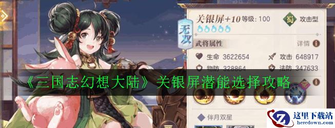 《三国志幻想大陆》游戏中关银屏潜能怎么加点?很多小伙伴比较纠结不知道关银屏潜能怎么加点比较好,那么接下来小编为大家带来《三国志幻想大陆》关银屏潜能选择攻略,一起来看看吧。