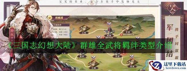 《三国志幻想大陆》游戏中群雄全武将羁绊类型有哪些?游戏中的武将羁绊是非常重要的一部分,合理的阵容搭配激活羁绊大大提升阵容强度,很多小伙伴不知道群雄武将羁绊类型有哪些,那么接下来小编为大家带来《三国志幻想大陆》群雄全武将羁绊类型介绍,一起来看看吧。