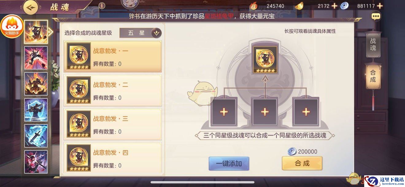 战魂的主要来源与征战板块的组队讨伐中,小将军可以与一众好友讨伐魔将获取不同星级的战魂哟,越高等级的魔将会爆出越高星级的战魂。