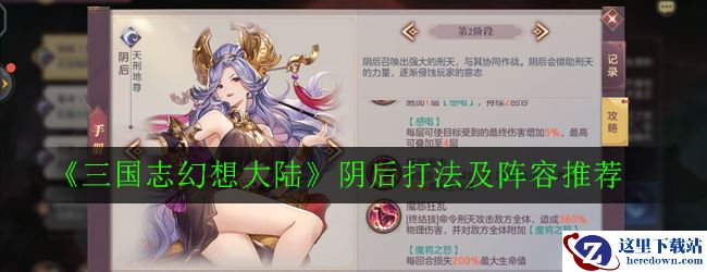 以上就是小编整理的关于《三国志幻想大陆》阴后打法及阵容推荐的全部内容,更多游戏攻略请持续关注手游网!