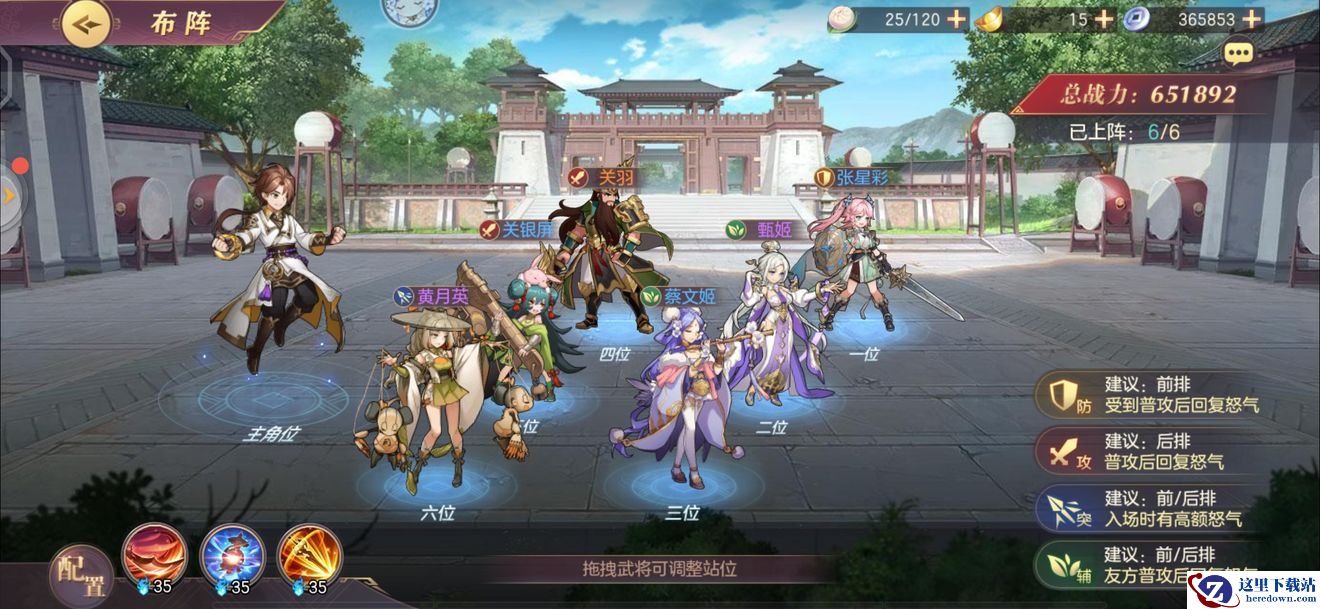 小张小关自然不用说,初期的两铁,伤害和盾都是足够的。剩下的两个位置按照我的需求我选择了黄月英和关羽,我的关羽是2星然后月英三星。月英的作用是保证补群体伤害快速请小兵的同时增加蜀国伤害,因为这里四号位我上了一个单攻将关羽。