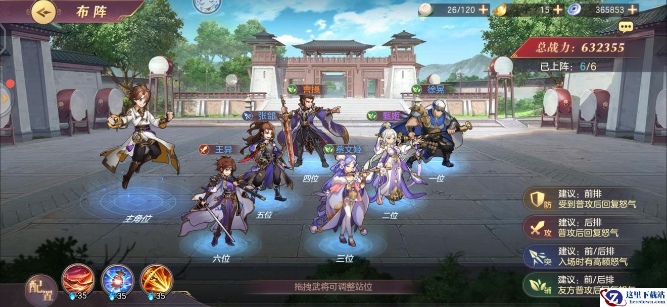 一二三号位分别是小张,甄姬和文姬,甄姬三星后增加闪避,同时因为羁绊的作用,三星的甄姬在这两个图中完全站得住,然后七日目标的蔡文姬星级一直跟着大部队。