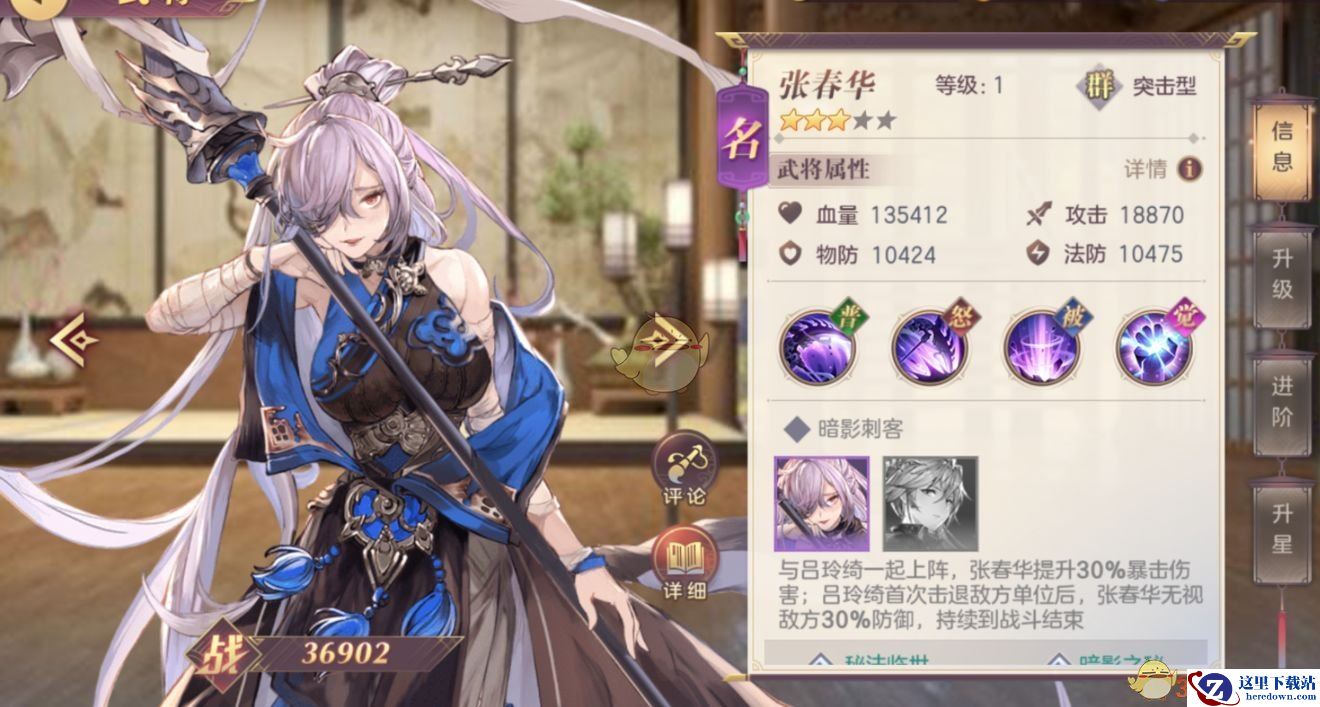 张春华提升30%暴击伤害,吕玲绮首次击退敌方单位,张春华获得无视30%防御。