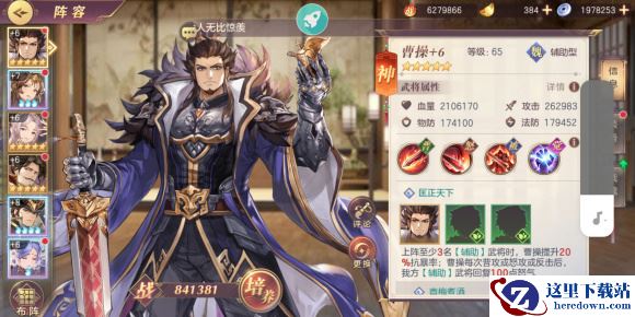 如图可见曹操羁绊,及普攻群辅回怒,配合三星天赋(前期三星足够用了)敌方怒气吸取,五星天赋,几率反击,3火,反击次数增加,能迅速叠满全体辅助怒气。同时尽快削弱对方