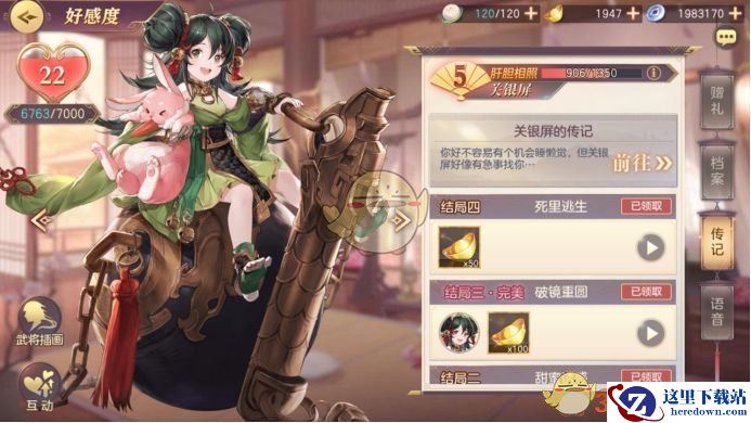 当玩家与武将好感度提升到一定等级之后,就会开启武将的传记玩法,所有女性武将及部分男性武将都会有自己的专属传记,玩家可以根据传记剧情的进展选择不同的分支,每个武将的传记有4个不同结局,达到完美结局时会获得该武将的武将头像。