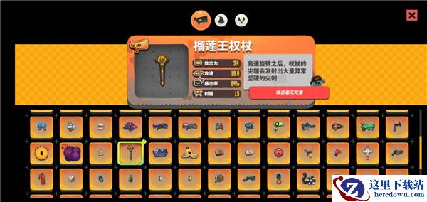第五名:榴莲王权杖(连射远程类,解锁后打第三关榴莲有几率掉落)