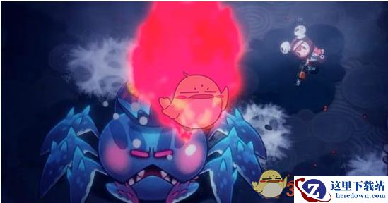 在场景里左右两边各两个打后会喷火的机关,喷火的方向是随机的,火喷到蜘蛛,蜘蛛会眩晕并喷出毒液,毒液会在地面给出预判位置的X,注意走位并攻击蜘蛛,蜘蛛会释放蜘蛛卵,蜘蛛卵会孵化出很多小蜘蛛,类似蓝莓,蜘蛛有冲撞攻击、头顶刺攻击和前方爪的攻击,注意闪避。