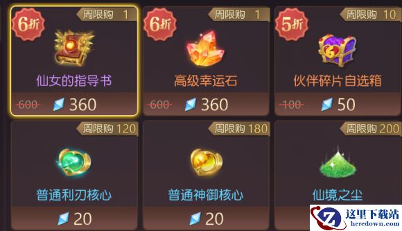 在魔晶商店里,我们主要是可以通过魔晶来各种魔晶来购买各种商品。并且每周还有限定打折例如仙女的指导书,高级幸运石,伙伴碎片自选箱,一般这些打折商品周限购会很少,所以如果有需要的,建议趁早入手购买哦。